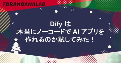 Dify は本当にノーコードで AI アプリを作れるのか試してみた! この記事は虎の穴ラボ Advent Calendar 2024の24日目の記事です。 明日で2024年アドベントカレンダーも最後ですね。 今年のアドベントカレンダーのラストを飾るのはT.Hさんです。 ご期待くださ…