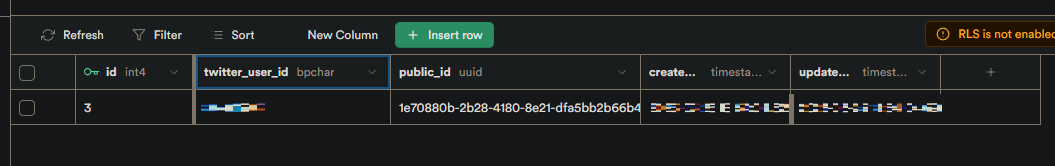 supabase で管理しているデータベースへ、アカウントを登録するテーブルの追加から始めます。