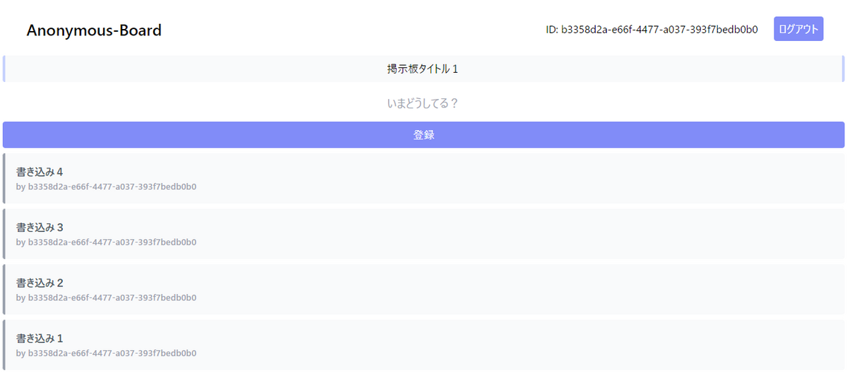 - 掲示板の書き込みにユーザーを関連付けし、書き込みの直下に公開用のユーザーIDを表示する